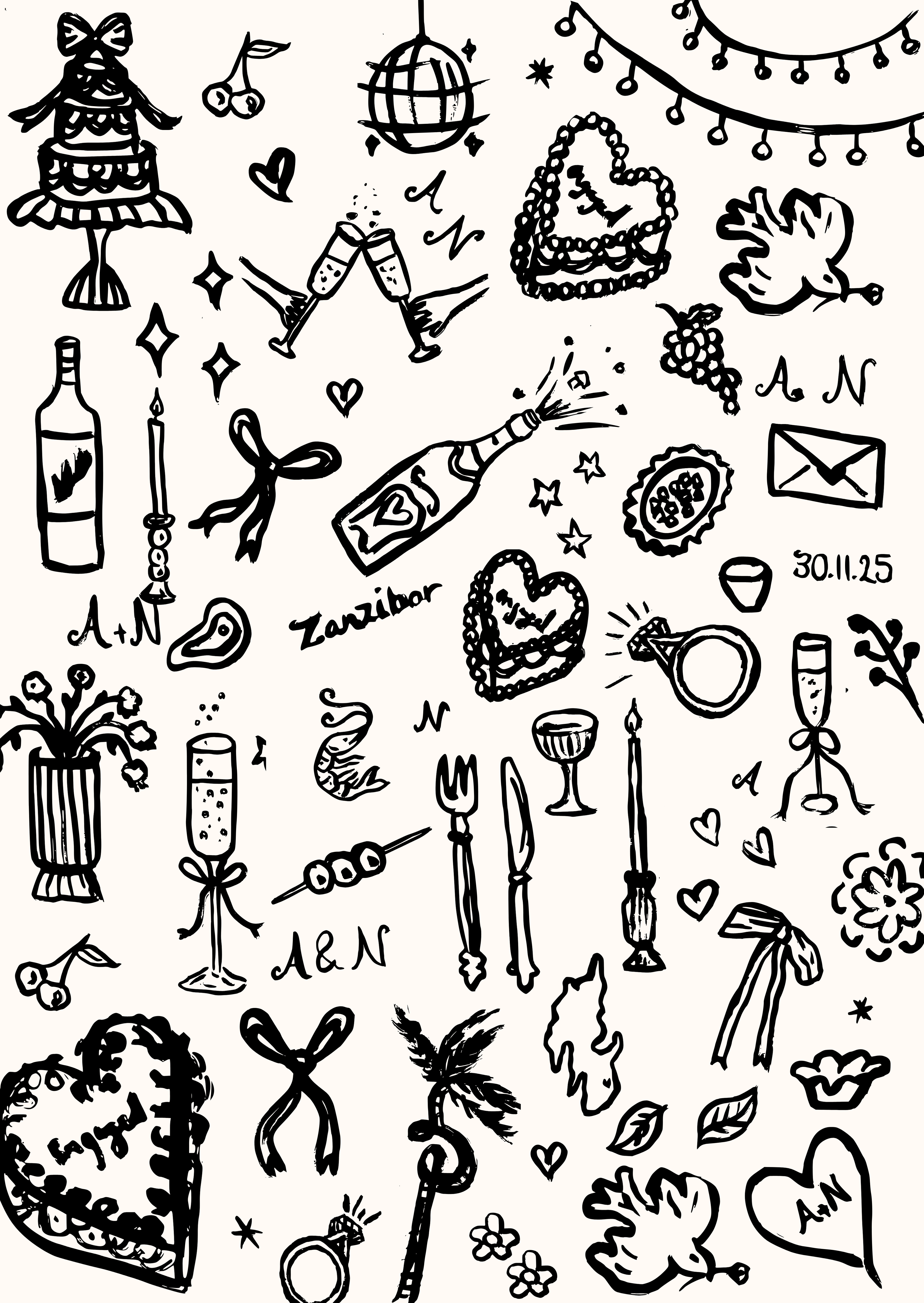 Alongside original artworks, I offer commissioned pieces for weddings, engagements, and other special moments, including hand-drawn illustrations for stationery, bespoke paintings, or personalised artworks inspired by meaningful places, shared meals, and personal stories.